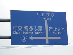 撮影場所:福岡市東区箱崎ふ頭 「行止まり」表記 |